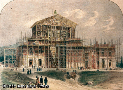 Тогдашний бургомистр Байройта – Мункер, показал потрясающие дипломатические способности, уговорил общественность, взял кредит и выделил из городских владений огромную территорию для постройки нового оперного театра по замыслу великого композитора. И управление делами короля Баварии выделило в 1874 году недостающую сумму денег. Благодаря ссуде в 400 000 марок, которую семья Вагнера полностью выплатила с процентами к 1910 году, театр был завершен к лету 1876 года. Вагнер лично дирижировал Девятую симфонию Бетховена в королевском оперном театре в старом городе в день, когда заложили камень Нового театра. В результате был построен отдельный Фестивальный Дом в городе. Он и является основной сценической площадкой для оперных спектаклей.