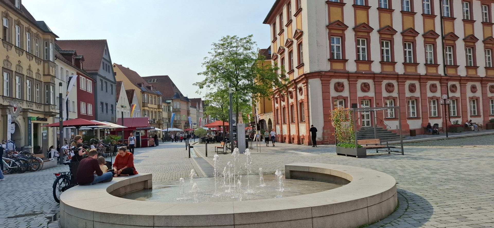 Далее находится Maximilianstr и главная площадь города. На самом деле это Maximilianstraße - центральная улица, где старая часть города и откуда другие достопримечательности находятся в пешей доступности. Эту улицу горожане называют просто Рынком, до 1810 года она и называлась Марктштрассе. После того как город стал частью Баварии, улицу переименовали в честь баварского короля Максимилиана I. В настоящее время торговля переместилась к современному торговому центру, а на Марктплатц проводят ярмарки, городские праздники и народные гуляния.