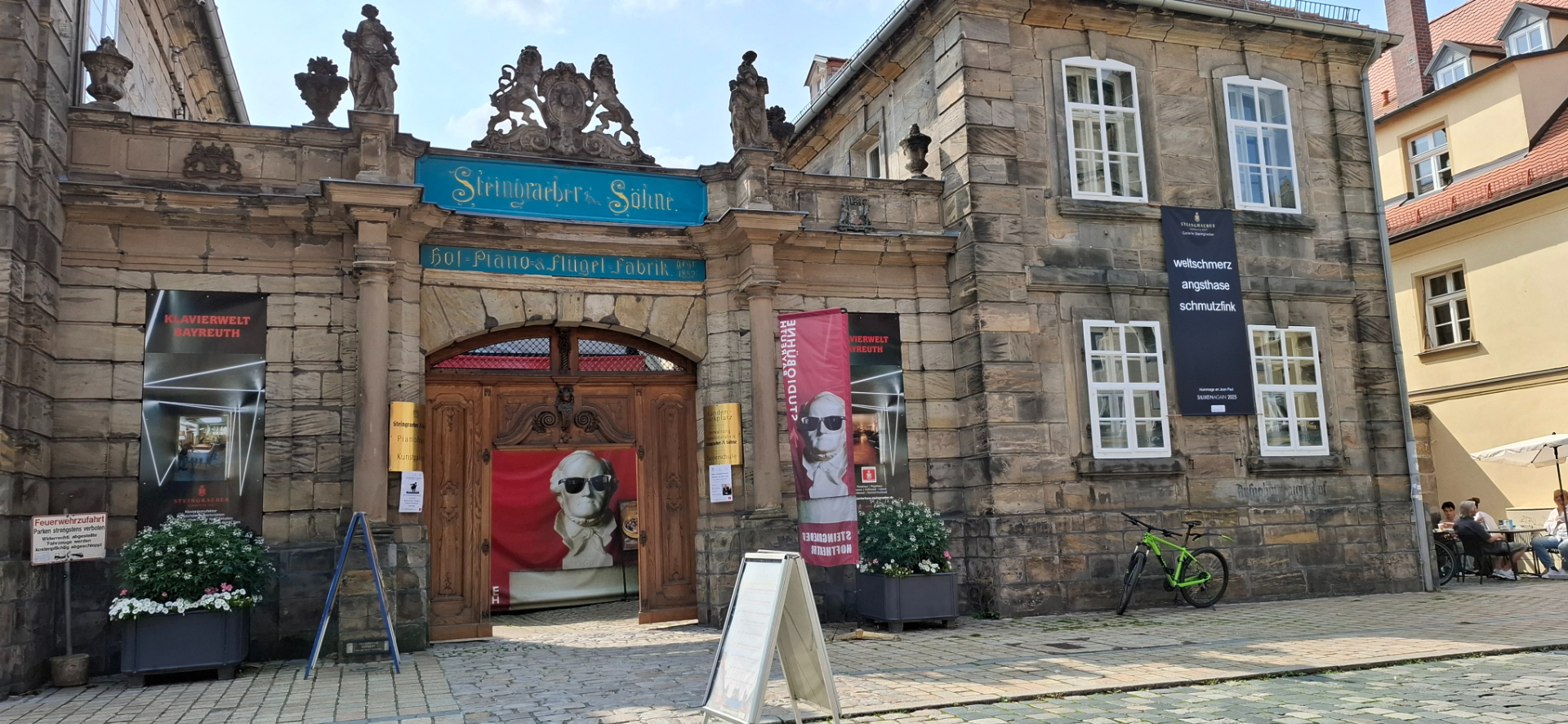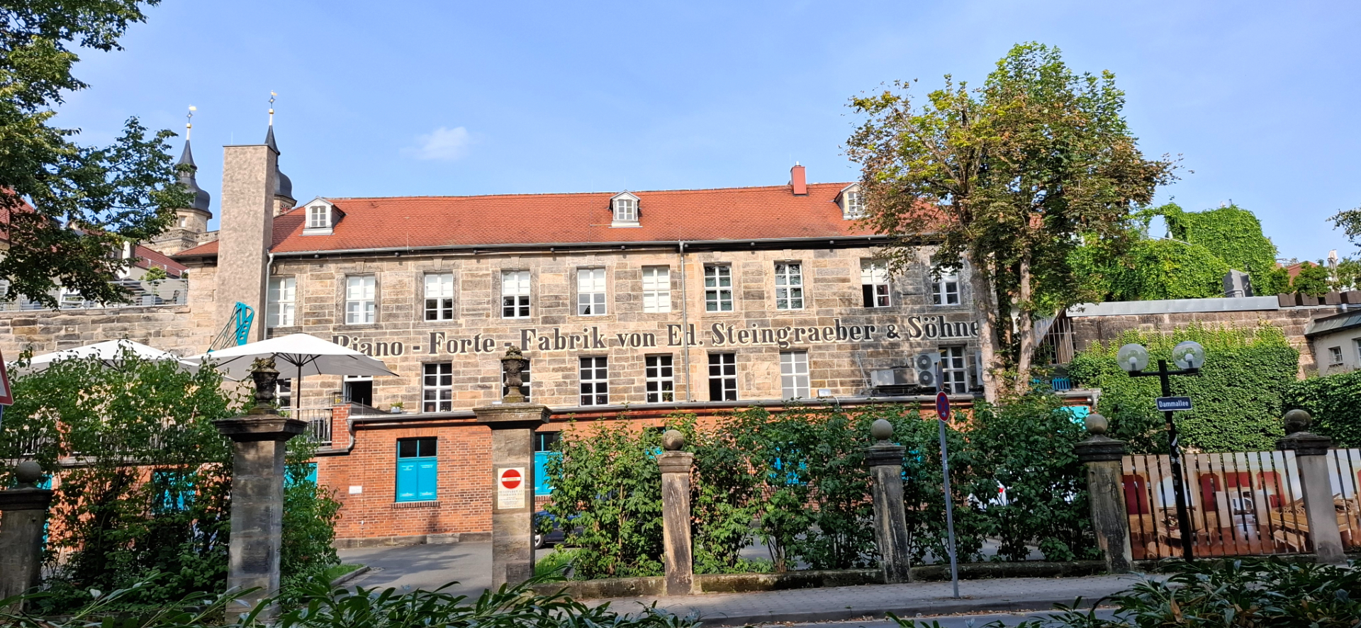И вуаля – перед нами старые фабричные здания. В 1852 году Эдуард Штейнграбер основал фабрику по производству фортепиано в Байройте. А 1871 году Штайнграбер купил этот дворец и здесь до сих пор заводоуправление находится, здание носит название Steingraeber-Haus.