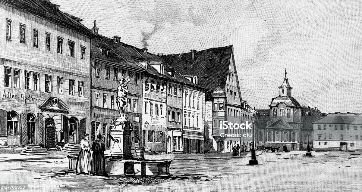 Одно из довоенных было бы самым старым зданием, если не война - «Аптека Морена», открытая в 1610 году; и старейшее из беспрерывно действующих предприятий города. На фасаде здания до сих пор можно увидеть дату постройки дома - 1610 г. а также инициалы её первого владельца. Основал её Иоганн фон Гера, аптекарь из Апольды, который приобрёл в 1609 году на рынке два смежных участка и вскоре построил дом. У него был собственный колодец во дворе и даже, в качестве «особого удобства» - ванная.