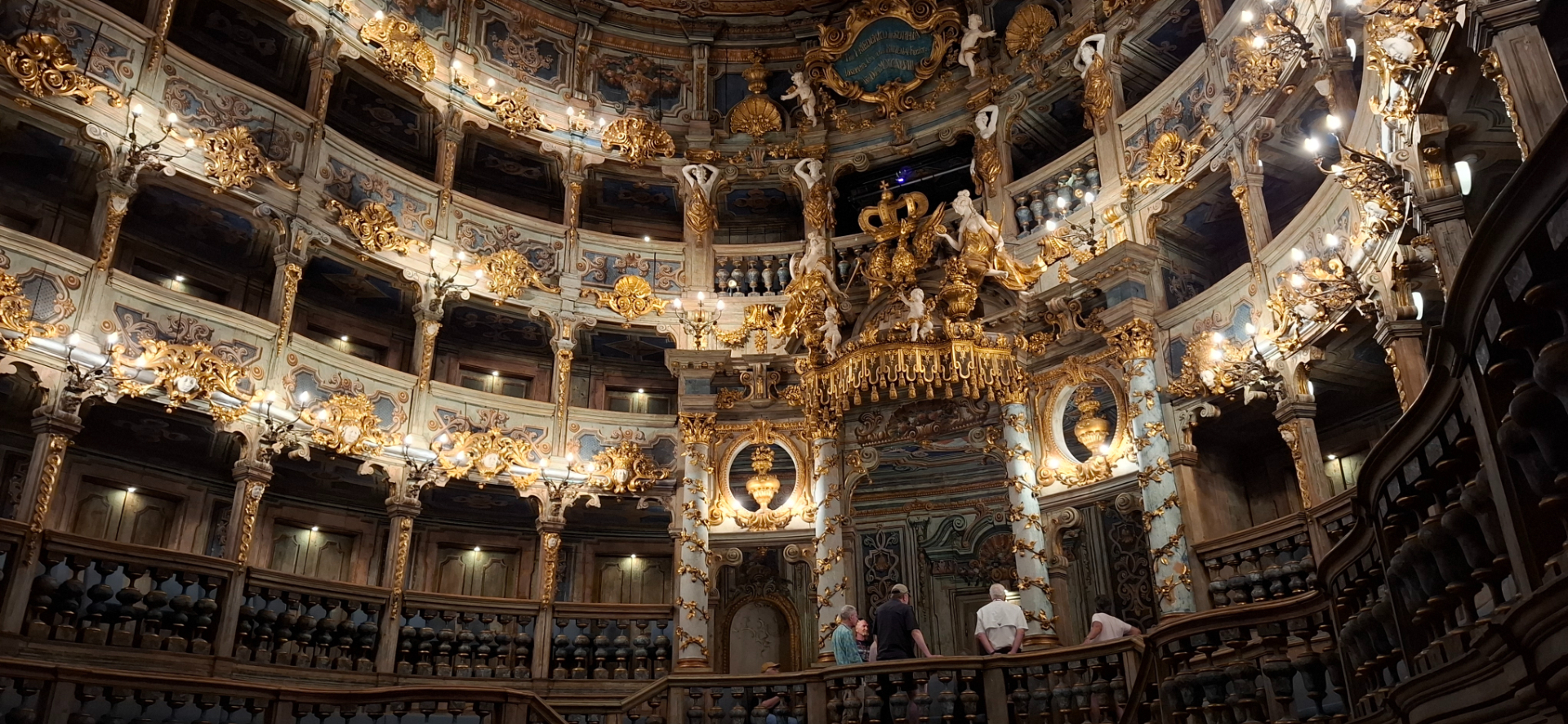 Забавно и внутри, ведь, вместо мрамора или камня лишь дерево, картон и бумага. И стояла «картонная копилка» театральных чудес на удивление прочно. Здесь ставили спектакли, проводили празднества. После смерти Вельгимины более чем сто лет спустя большая сцена привлекла композитора Рихарда Вагнера, который в 1872 году выбрал Байройт в качестве фестивального центра. Некоторые участки интерьера до сих пор покрыты крашеным полотном, чтобы избежать трещин и улучшить акустику.