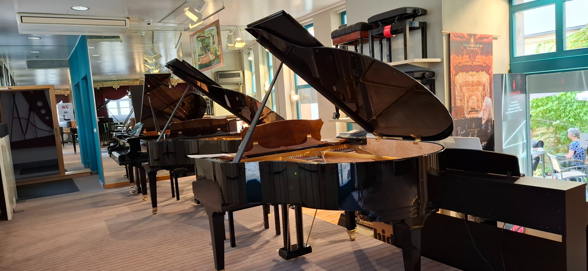 В нескольких залах образцы роялей, изготовленных в Байройте. Есть первый концертный рояль, изготовленный фабрикой Steingraeber, исторические пианино и рояли разных эпох. Особые редкости, например, в музее хранится старинное пианино с педалью типа «Celeste» (или «Sordino») и даже модель с «false soundboard», репродукция оригинального резонансного устройства. Один из центральных экспонатов музея - рояль Листа, 1873 года, который бывал в Байройте, нередко играл на инструментах Steingraeber и имел тесные отношения с семьёй Steingraeber. В 1881 году для оперы Вагнера фабрика Steingraeber изготовила специальный инструмент - Gralsglockenklavier ( «колокольный-рояль / «гроб-колоколы» для «святых колоколов» из оперы Parsifal). Но его в коллекции нет, оригинал 1882 года, заказанный Вагнером, сейчас выставляется в Museum of Musical Instruments, Лейпциг. Для вагнеровского музея в Байройте изготовлена копия фабрикой Steingraeber.