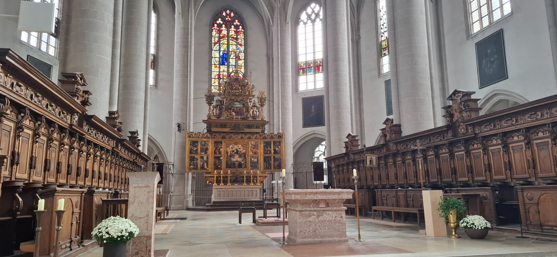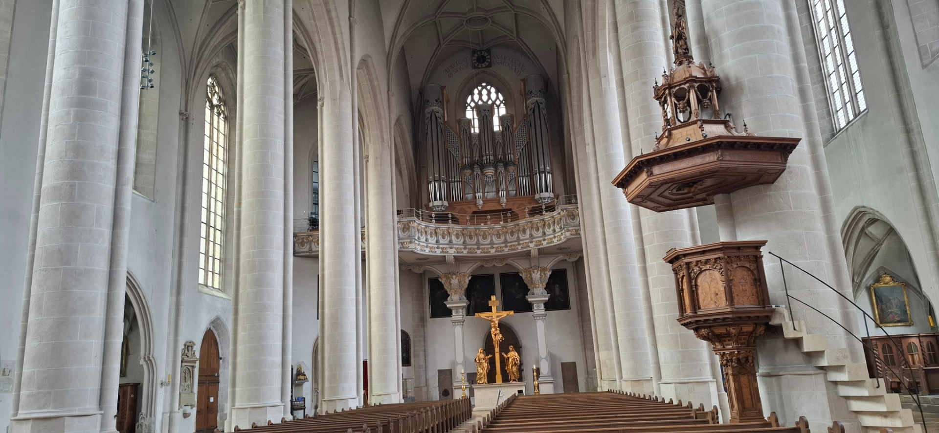 Интерьер храма скорее нарядный, чем нет. Алтарь создан в 1572 году, по случаю 100-летия основания Ингольштадтского университета.
