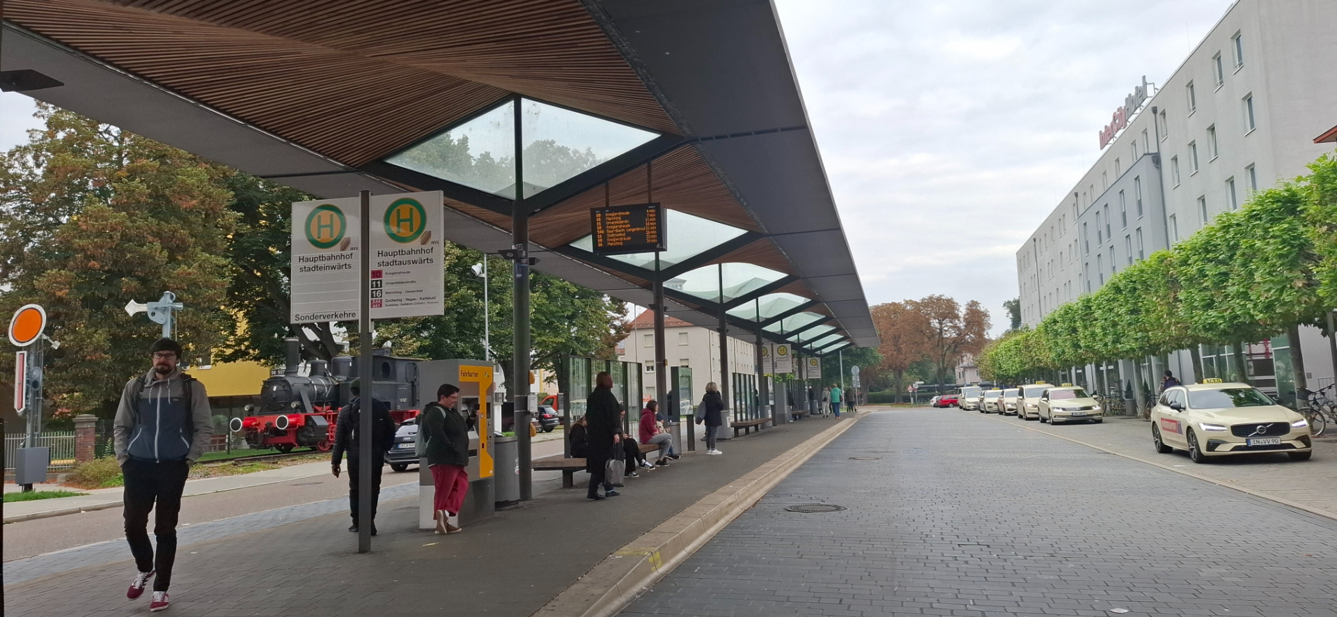 Вокзал в Ингольштадте на удивление небольшой, для довольно крупного в Баварии города. Направо после выхода с вокзала -остановка городского транспорта. До центра города неблизко, лучше подъехать автобусами.