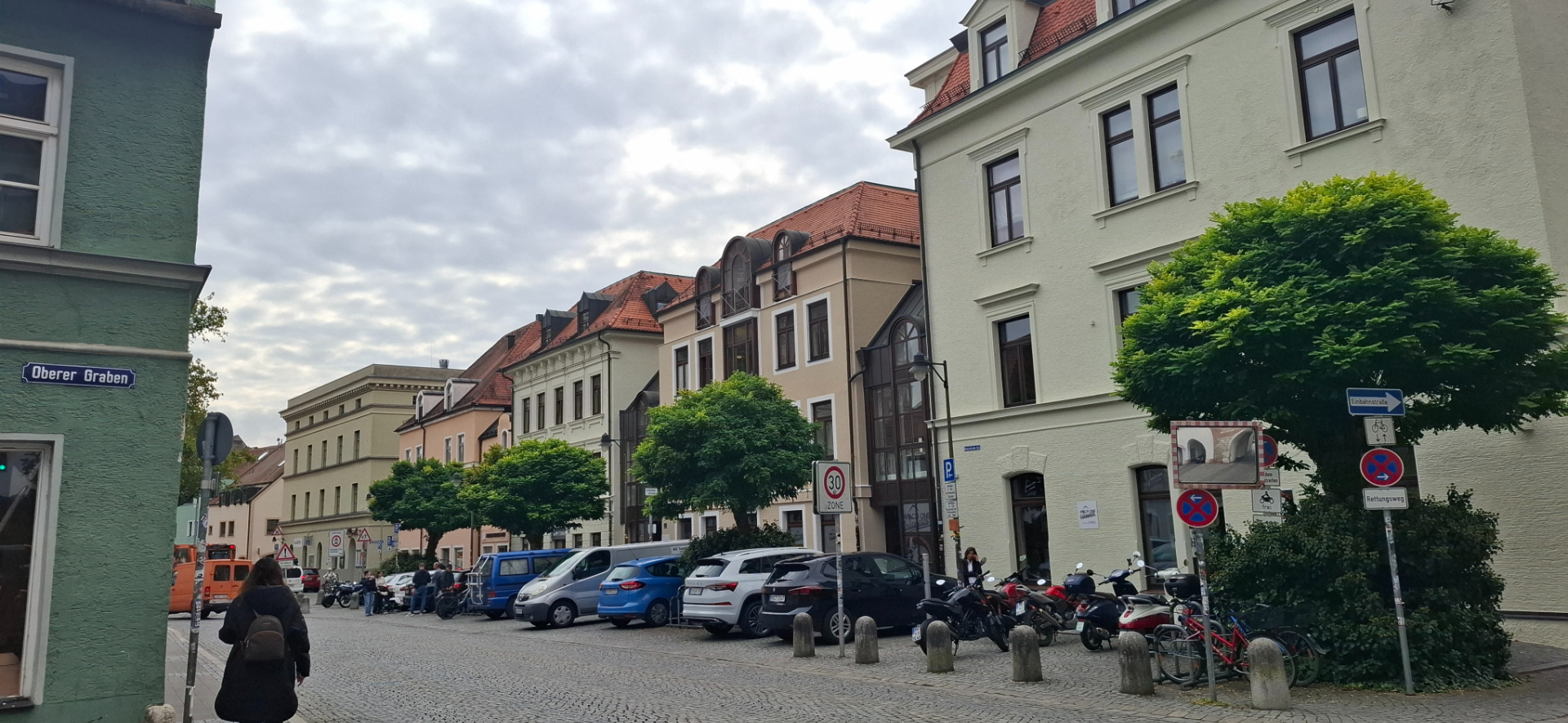 Нашла в результате искомый храм, написан про него отдельный отзыв. Полная впечатлений от красивого интерьера кирхи братьев Азам, расслабленно - уже ничего искать специально не было намечено; пошла вдоль короткой стороны «прямоугольника» к двум городским воротам. Шла по небольшим улочкам с домами, как из древности – на самом деле из древности и есть их восстановленный после войны облик.