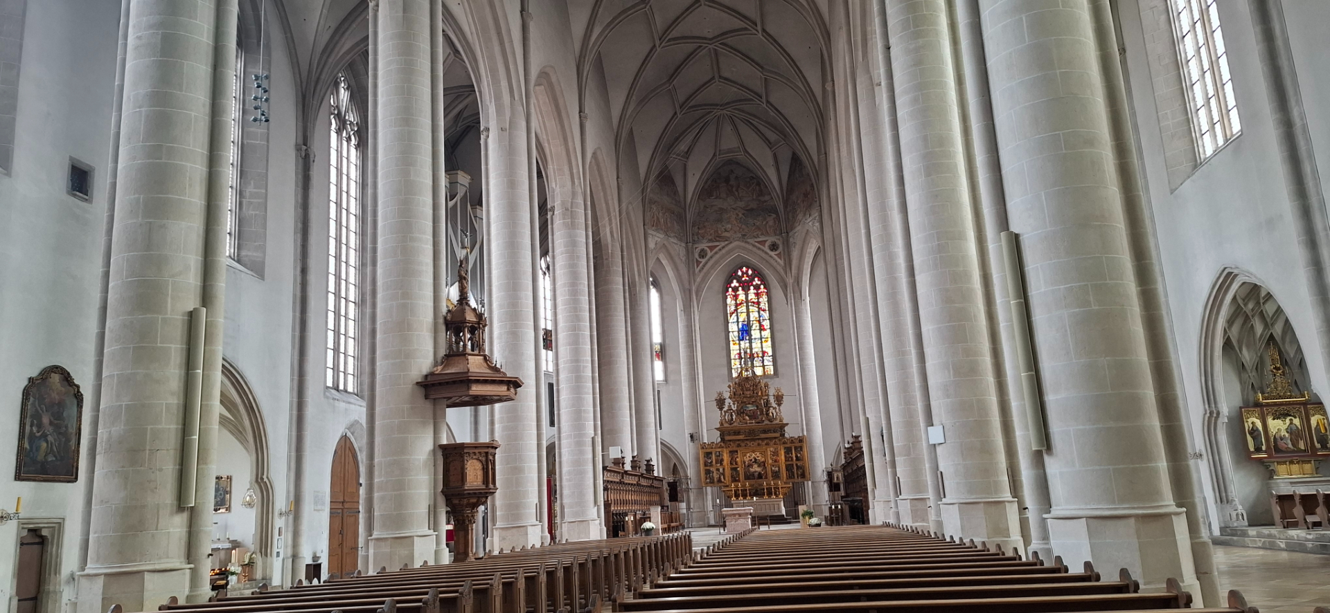 Еще одна достопримечательность интерьера — причудливые двухуровневые своды боковых капелл, созданные в начале XVI века и прославившие собор далеко за пределами Баварии.