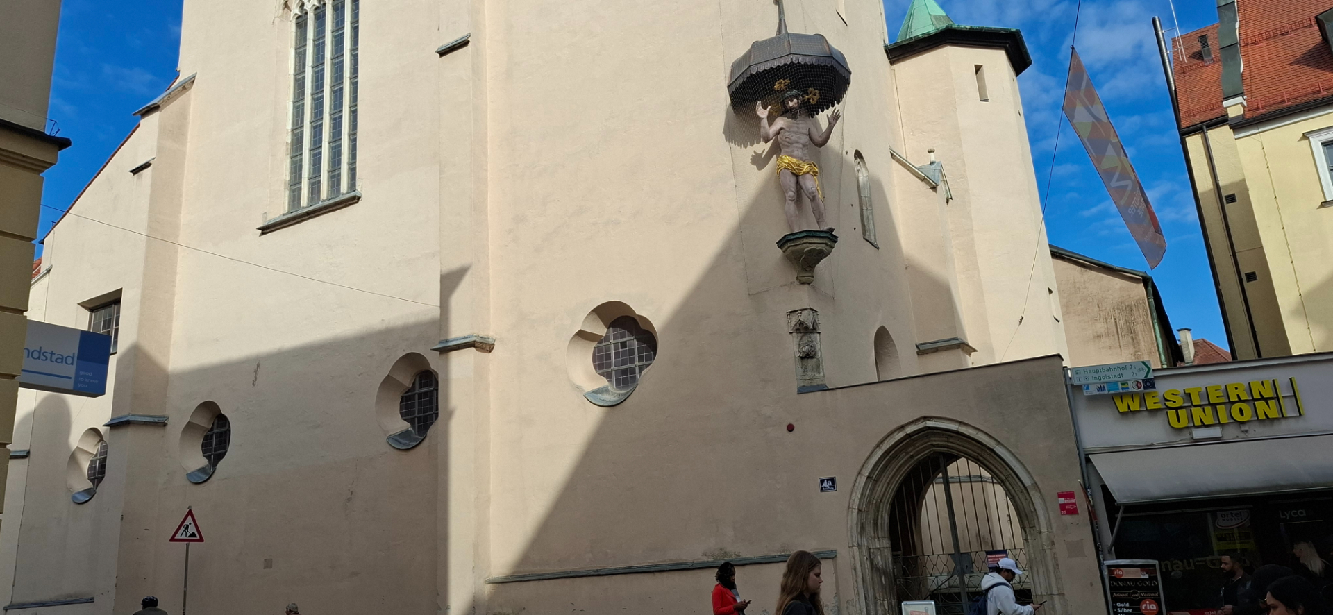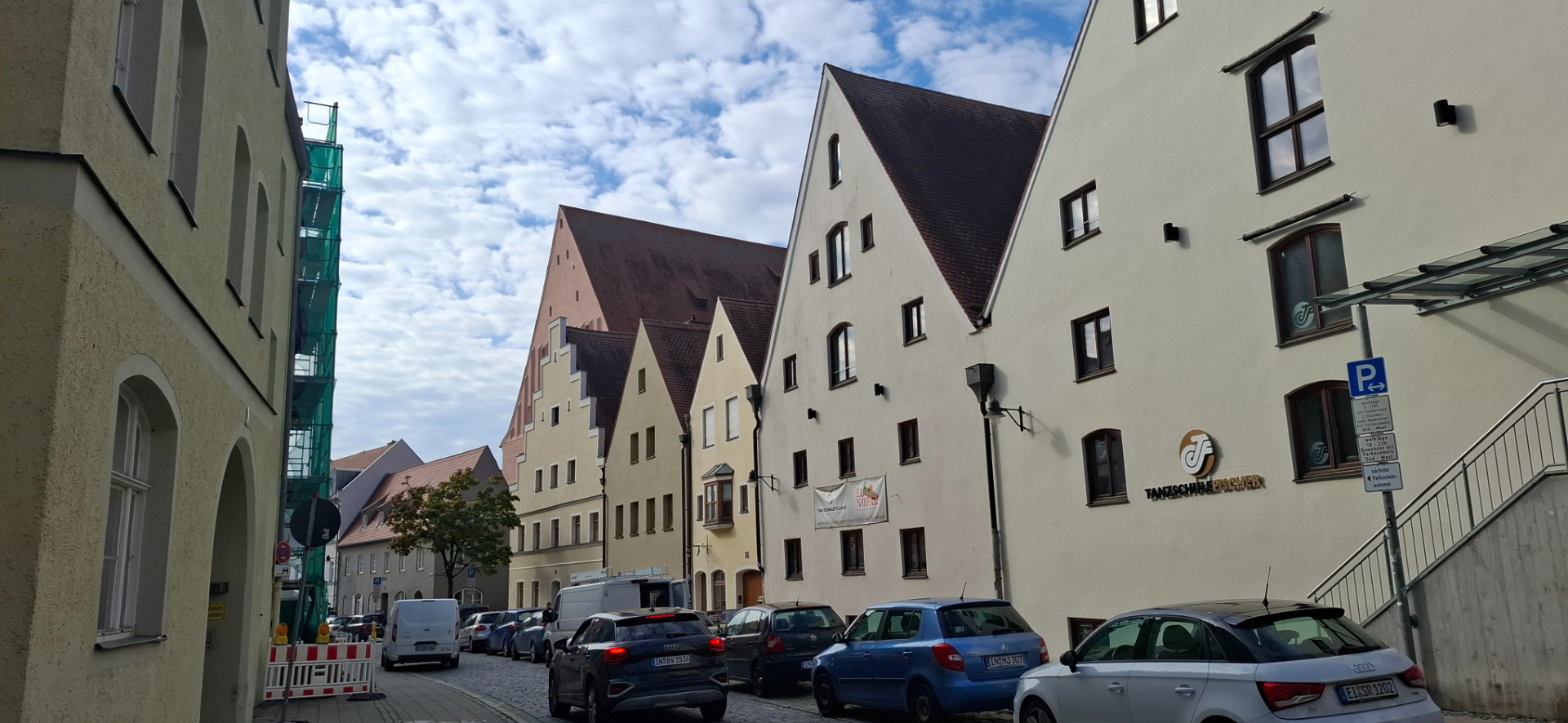 От Ратушной площади быстро шла вверх, как показывала карта к Азамкирхе. Moritzstraße ведет мимо западного фасада церкви Святого Маврикия к перекрестку, известному как Schlifflmarkt. Здесь пересекаются две основные городские магистрали: идущие, соответственно, в направлении север-юг и запад-восток: Людвигштрассе и Theresienstraße. Кварталы все из симпатичных домиков вокруг. Когда-то исторический центр Ингольштадта был известен роскошными домами XV-XVI века, но в XIX-XX веке некоторые из них были перестроены, а некоторые уничтожены во время войны.