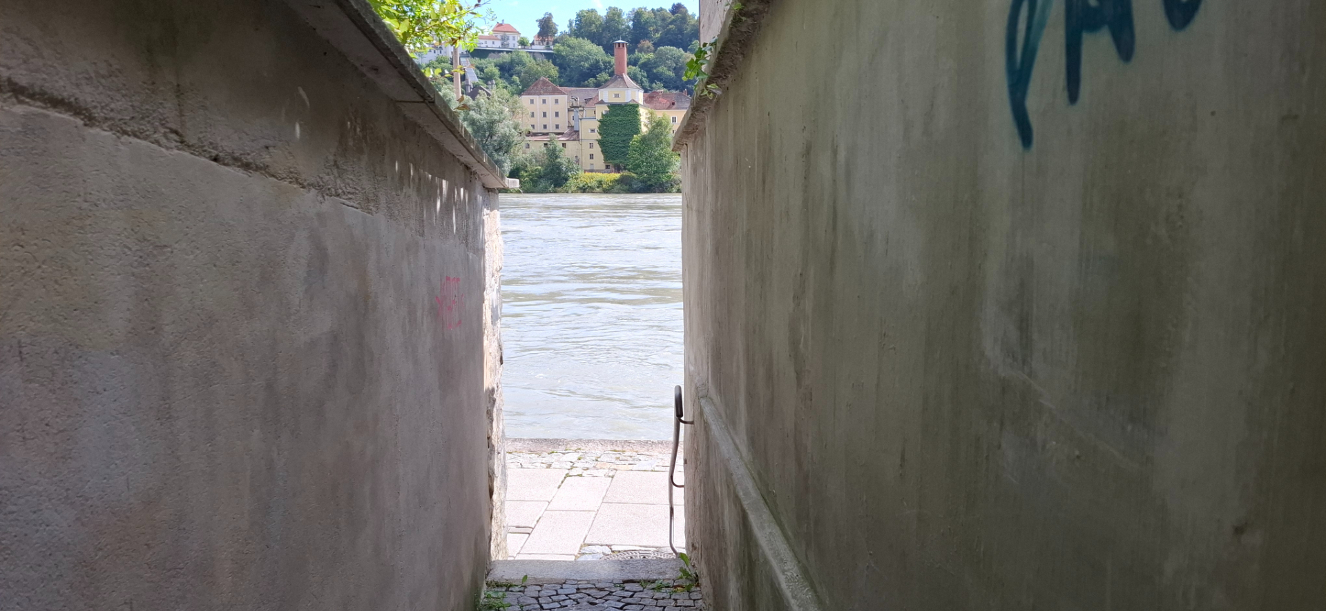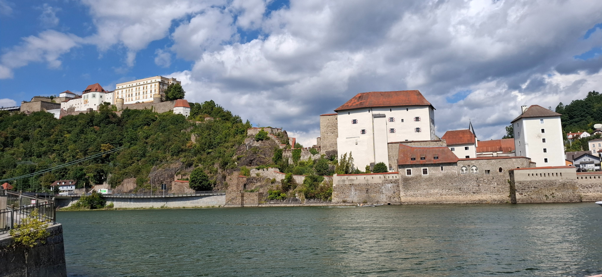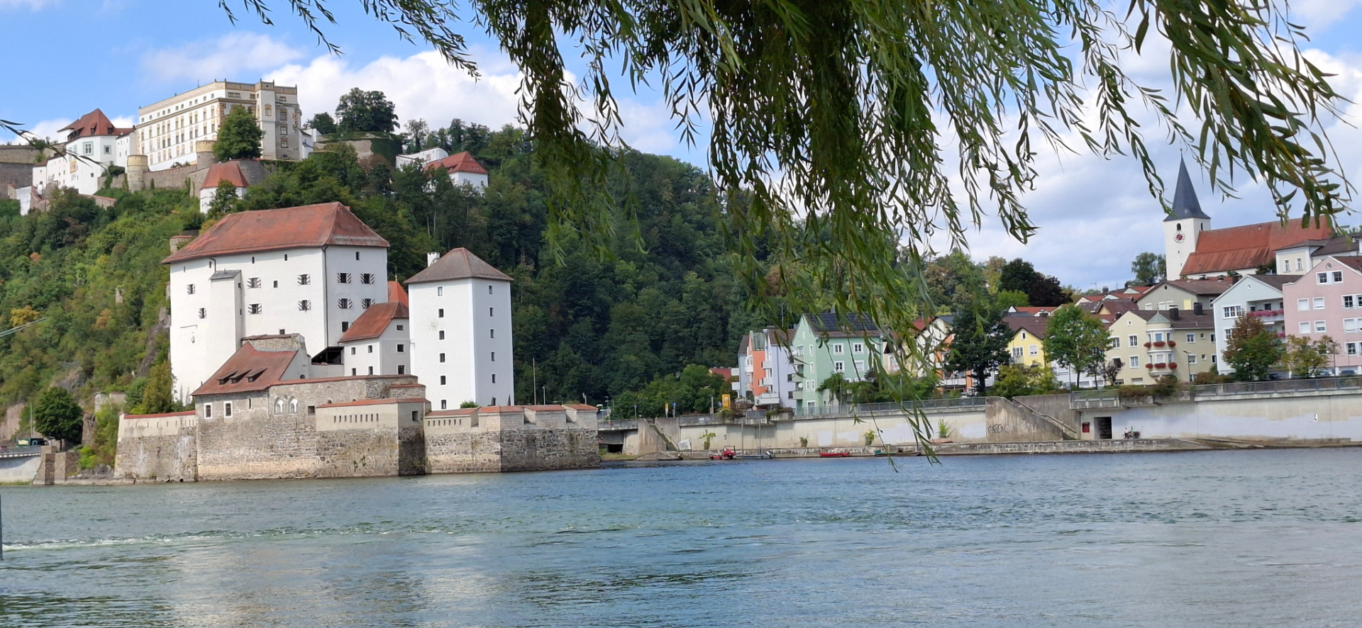 Почему-то принято всякую красивую натуру с горами и водой сравнивать и называть «щвейцарской». А тут кругом самая всамделишная природная краса во плоти, натуральные горы и воды «выше крыши». В прямом смысле выше крыш при наводнениях. Потому Пассау называют немецкой Венецией, так как окружена водой со всех сторон. Город заливало наводнениями не раз чуть ли не полностью. В 2013 году из-за сильнейшего половодья городу пришлось потратить немалые средства на реставрацию. Влажность в городе самый главный бич помещений, плесень во всех домах и исторических зданиях.
