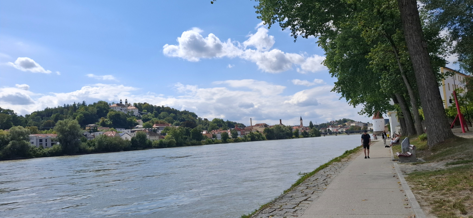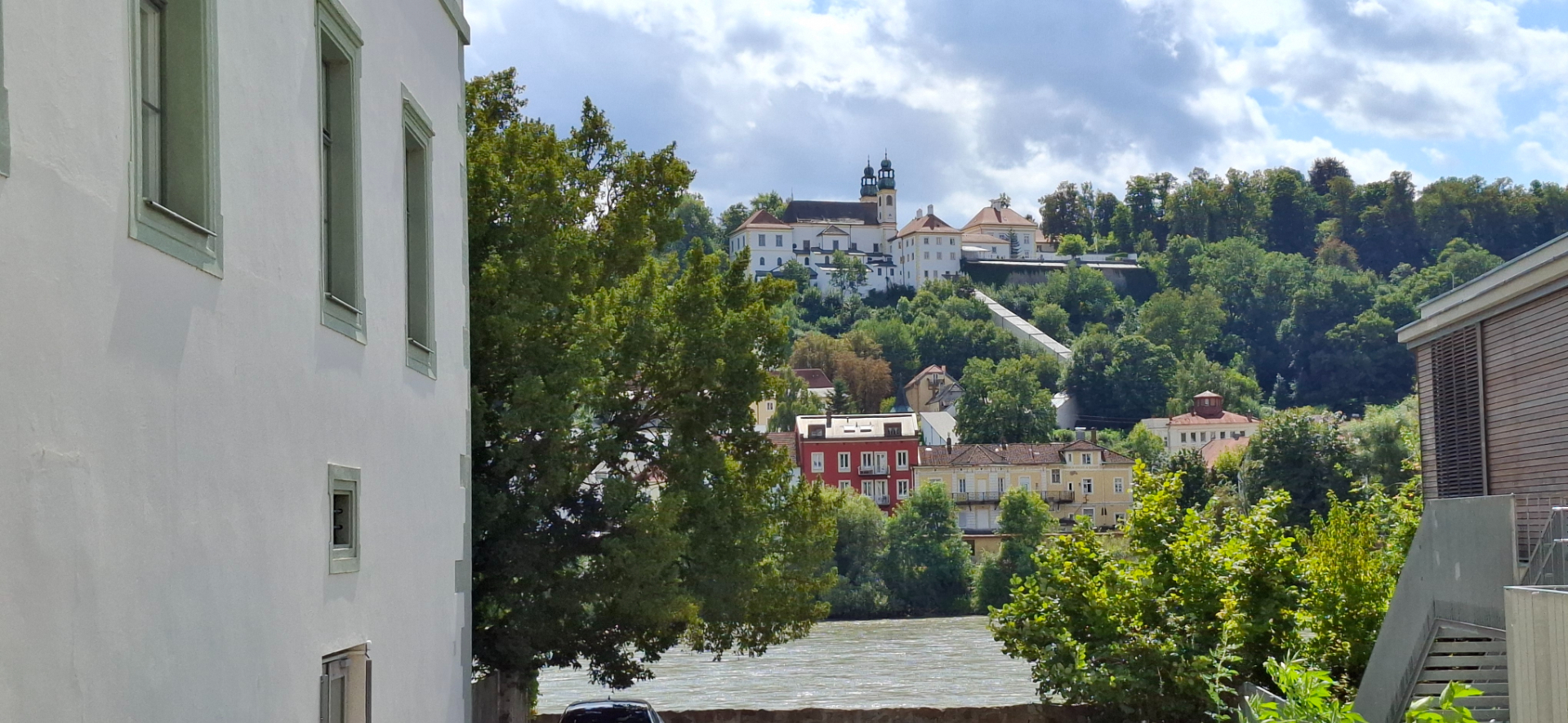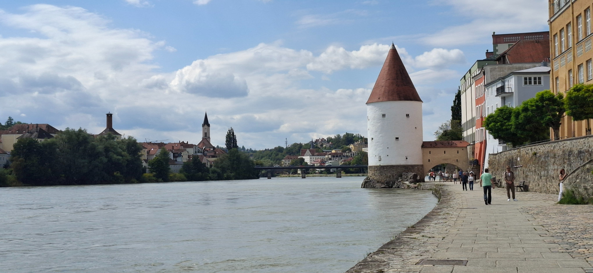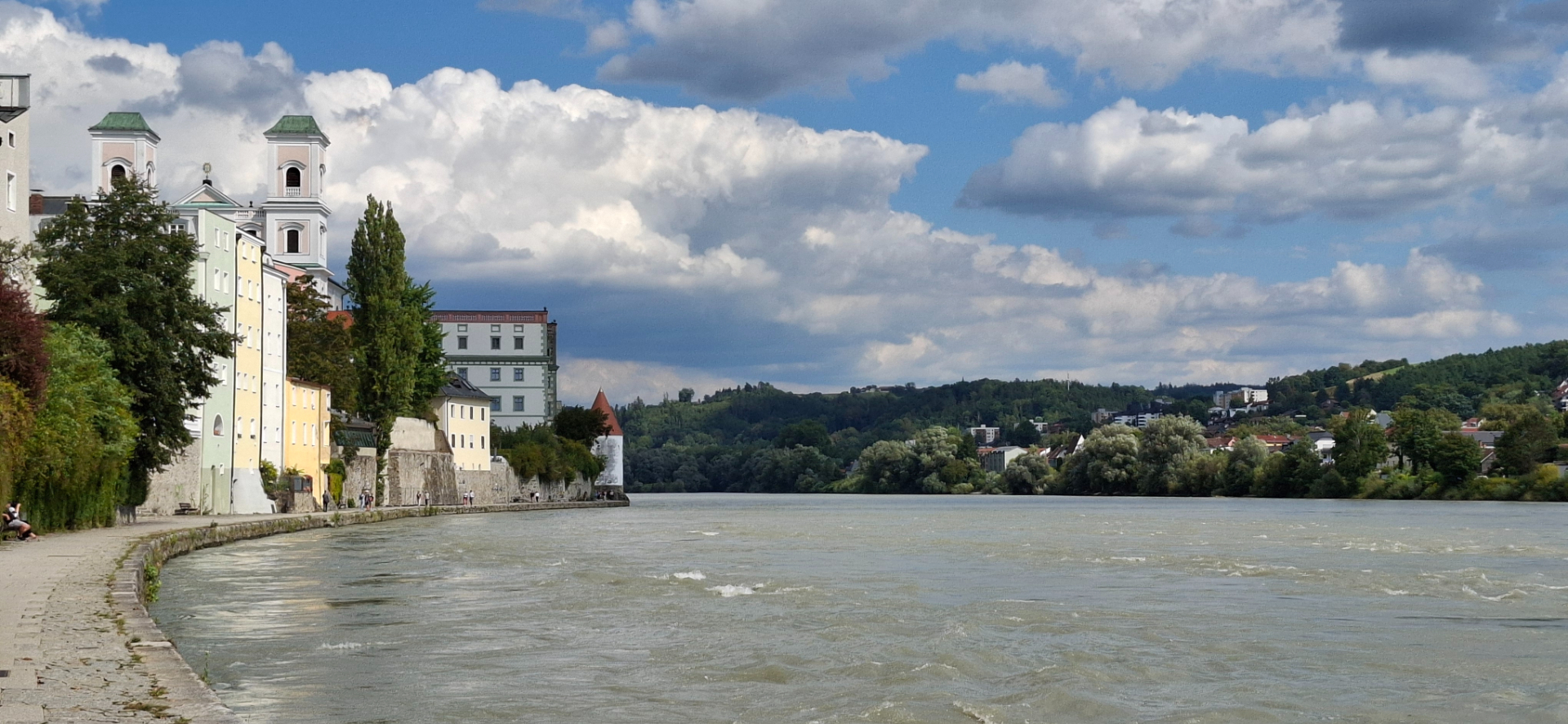 Почему-то принято всякую красивую натуру с горами и водой сравнивать и называть «щвейцарской». А тут кругом самая всамделишная природная краса во плоти, натуральные горы и воды «выше крыши». В прямом смысле выше крыш при наводнениях. Потому Пассау называют немецкой Венецией, так как окружена водой со всех сторон. Город заливало наводнениями не раз чуть ли не полностью. В 2013 году из-за сильнейшего половодья городу пришлось потратить немалые средства на реставрацию. Влажность в городе самый главный бич помещений, плесень во всех домах и исторических зданиях.
