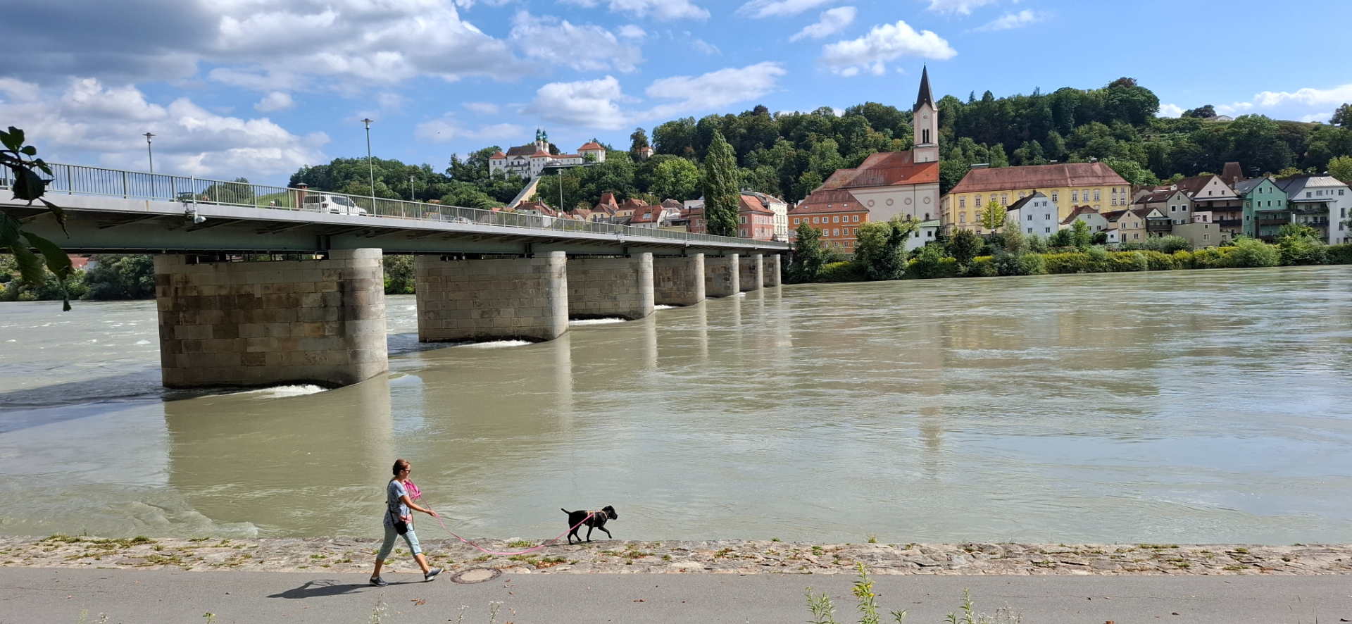 Дальше направила свои стопы по берегу Инн. Набережная Инна называется Иннским променадом. Река Инн и есть главный виновник наводнений в городе, что при определенных погодных условиях несет с гор скопившиеся массы воды. Прибрежные здания, улицы тонут по вторые этажи, спасатели перемещаются по улицам на моторных лодках. Когда вода уходит, дезинфекционные бригады очищают территорию от мусора и проводят обеззараживание жилых помещений, других зданий.