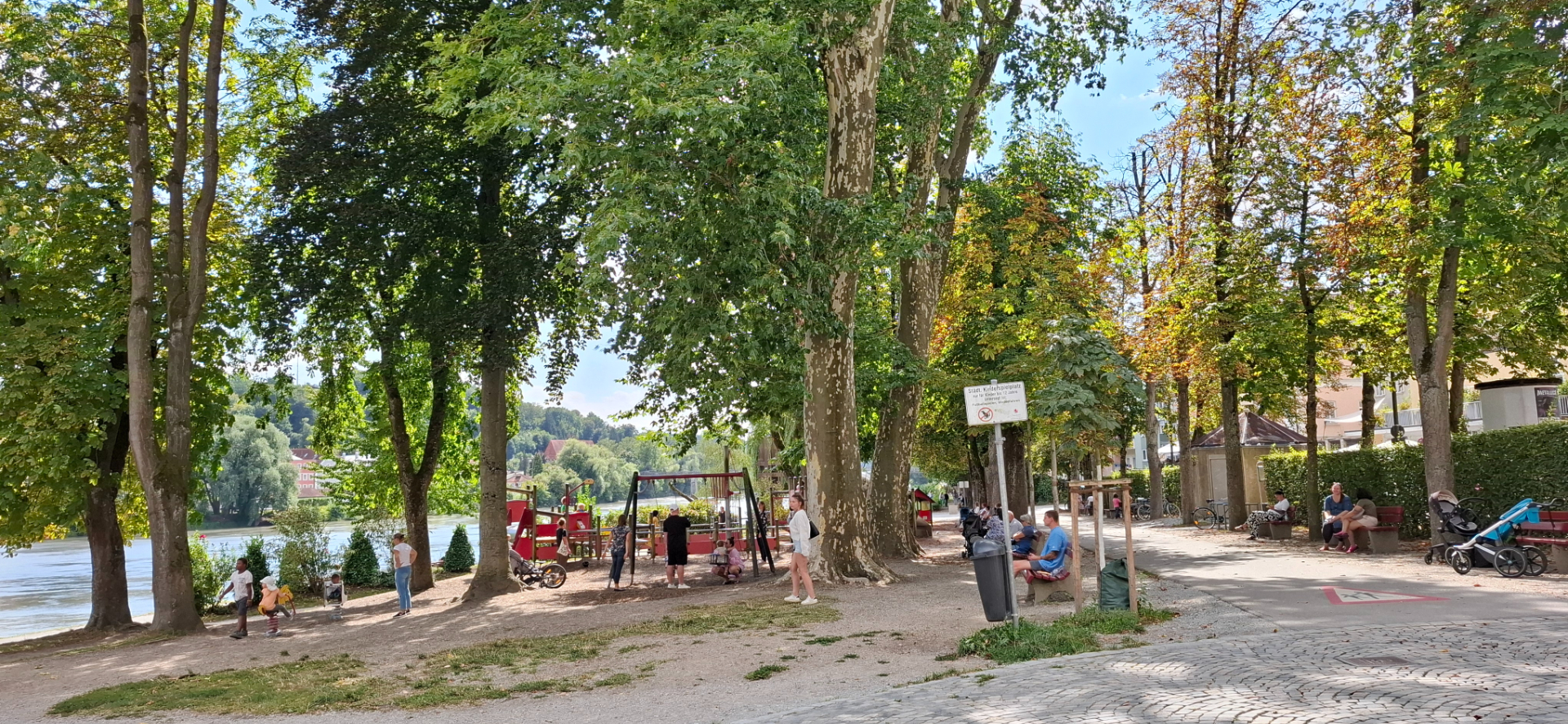 За мостом через Инн по другую сторону за опорами, раскинулся зеленый парк с забавами для детей.