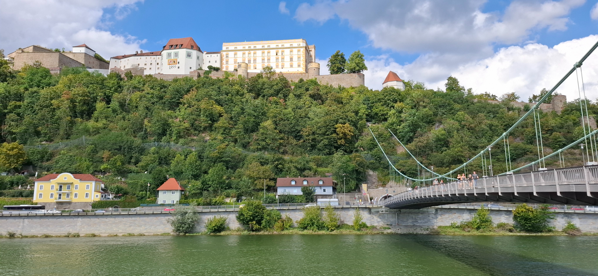 В 1435 году замок Нидерхаус, что был резиденцией епископов, разрушен взрывом пороха. В XVII веке здесь была тюрьма для тех, кто не подчинялся власти духовенства. Сейчас это частное владение, туристов в него не пускают. Интересная история связана с новейшим временем замка. Знаменитый живописец Вагнер, который расписывал залы в Ратуше, купил себе этот замок. Устраивал в нем праздники со множеством гостей. И тут городской совет решил построить через Дунай прямо к замку подвесной мост, по которому мы сейчас ходим/едем. Вагнер просил построить мост в старинном стиле, чтобы соответствовал историческому виду его замка. Но у властей города были свои соображения, конструкция вполне современная у моста. Художник очень обиделся, продал замок своему другу Нижний замок, и уехал из родного города насовсем. Принципиально до конца жизни ни разу больше в Пассау не был.