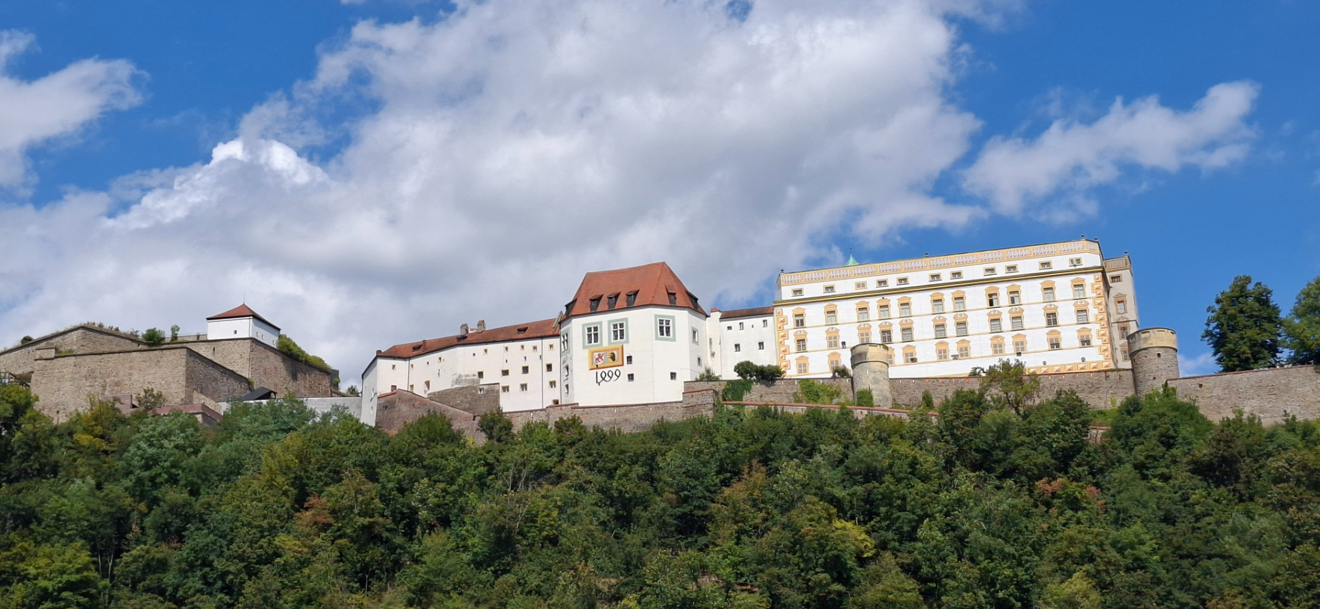 На горе Георгсберг в Пассау на высоте 105 метров возвышается Veste Oberhaus в Пассау. Крепость видна отовсюду в городе, расположена на левом берегу Дуная. Снизу самые живописные виды на нее. На фасаде одного из зданий герб архиепископа Шахнера и год 1499, именно 1499 год. Петля от половинки восьмёрки означает цифру "4". Хотя сама крепость намного старше. Оборонные укрепления тут были еще при римлянах. Крепость начал строить епископ Ульрих еще в 1217 году. Чтобы повелевать с высоты, но быть подальше от мятежного народа. Начинается строительство с оригинального «Георгсбурга», потом прибавляются обширные укрепления, что превращает «Георгсбург» в «Veste Oberhaus».
