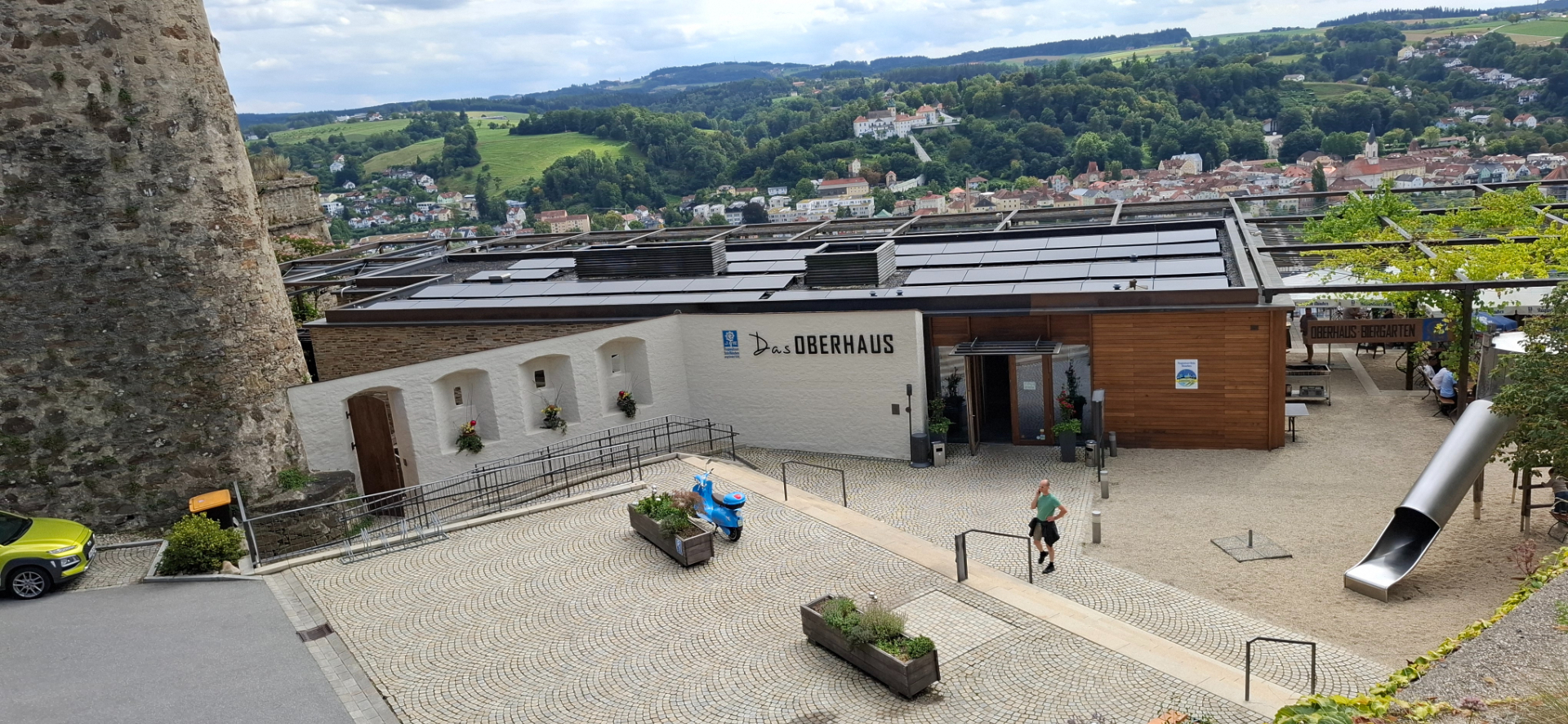 Сколько крепостей, замков видано, но только тут на горе у замка работает один из лучших ресторанов города, как написано в интернете про «Das Oberhaus» на высоте над Дунаем.