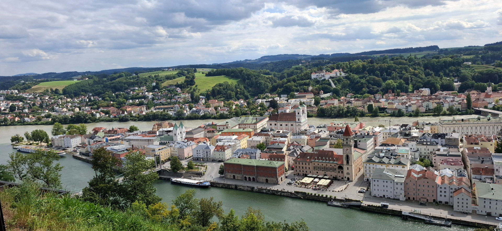 Собор Св.Стефана образует центральный элемент всего исторического ядра Пассау. С высоты его легко разглядеть, как и остальные храмы. Хорошо, что перед крепость уже обошла старый город. Сверху знакомые церкви, площади, Собор с Резиденцией, улочки и набережные дали целостную картинку.