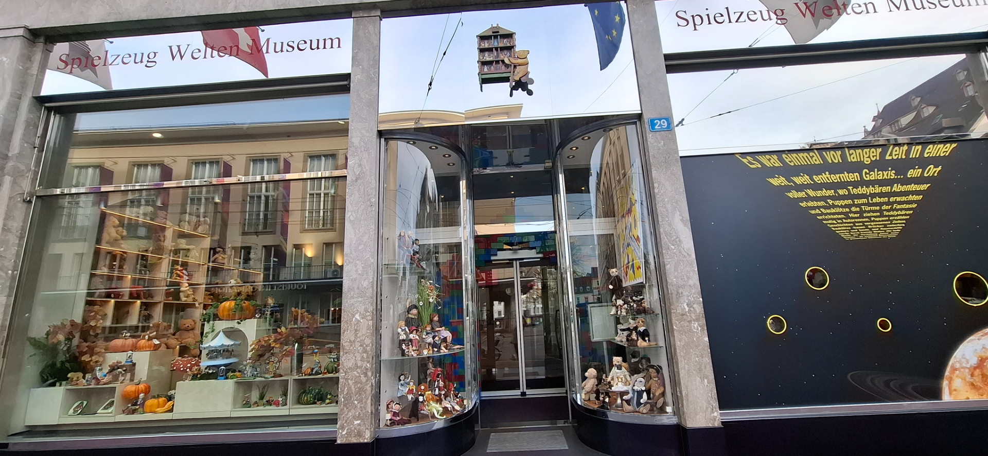 На перекрестке Barfüsserplatz через дорогу, углового здания на пересечении улиц Steinenberg и Steinenvorstadt , в котором расположен Музей игрушек. Раньше он назывался «Музей кукольных домиков» (Puppenhausmuseum), теперь - «Мир игрушек» (Spielzeug Welten Museum Basel). Музей был основан Гизелой Ори, которая решила открыть отдельное здание под коллекцию и сохранению игрушек. Она стремилась создать место, где посетители могли бы ознакомиться с историей и развитием игрушек.