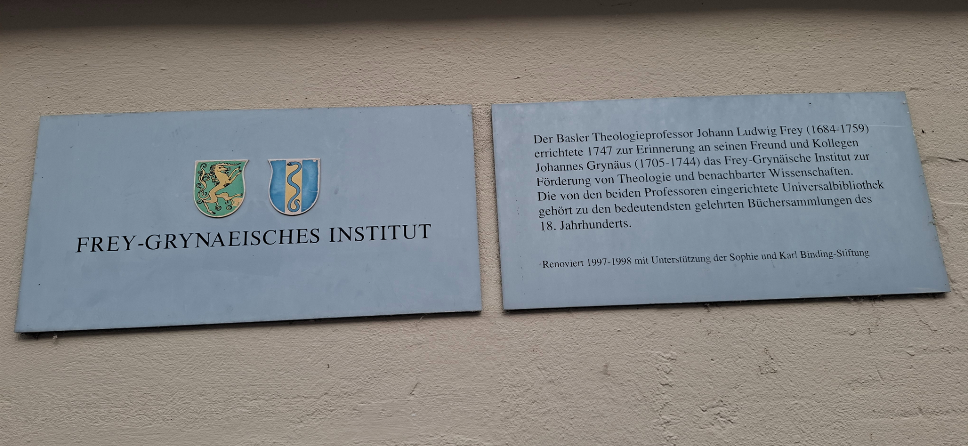 Рядом за забором находится Frey Grynaeisches Institut (Heuberg, 33). Это учебно-научная и библиотечная организация, основанная в 1747 году профессором Johann Ludwig Frey в память о его коллеге Johannes Grynaeus. Основная деятельность: содействие теологическому образованию, хранению и исследованию старинной библиотеки (от книг с начала книгопечатания до XIX века).