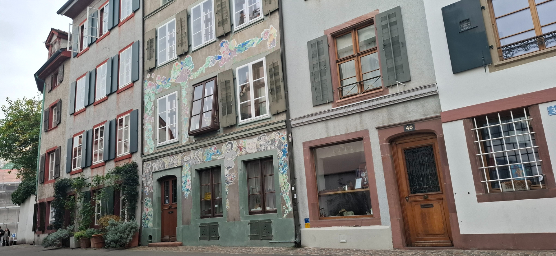 Напротив «дома с носорогами» здание Еautiful -красивый старый дом с картинами на стенах по улице Heuberg, 42. Фаснахт - такой особенный праздник, в Базеле, что-то вроде карнавала и Масленицы. Начинается ровно в 4:00 утра в понедельник после «пепельной среды» (Morgestraich) и длится ровно 72 часа. «Пепельная среда» : первый день 40-дневного Великого поста перед Пасхой, то есть фактически в первый понедельник Великого поста. Исторически Fasnacht служил «разгрузкой» перед строгим постом, поэтому церковь закрывает на это глаза. Участники полностью скрывают лицо, есть особая музыка этого карнавала - piccolos и барабаны, «Cortège» шествия по улицам. Fasnacht считается крупнейшим карнавалом Швейцарии и объектом нематериального культурного наследия ЮНЕСКО.