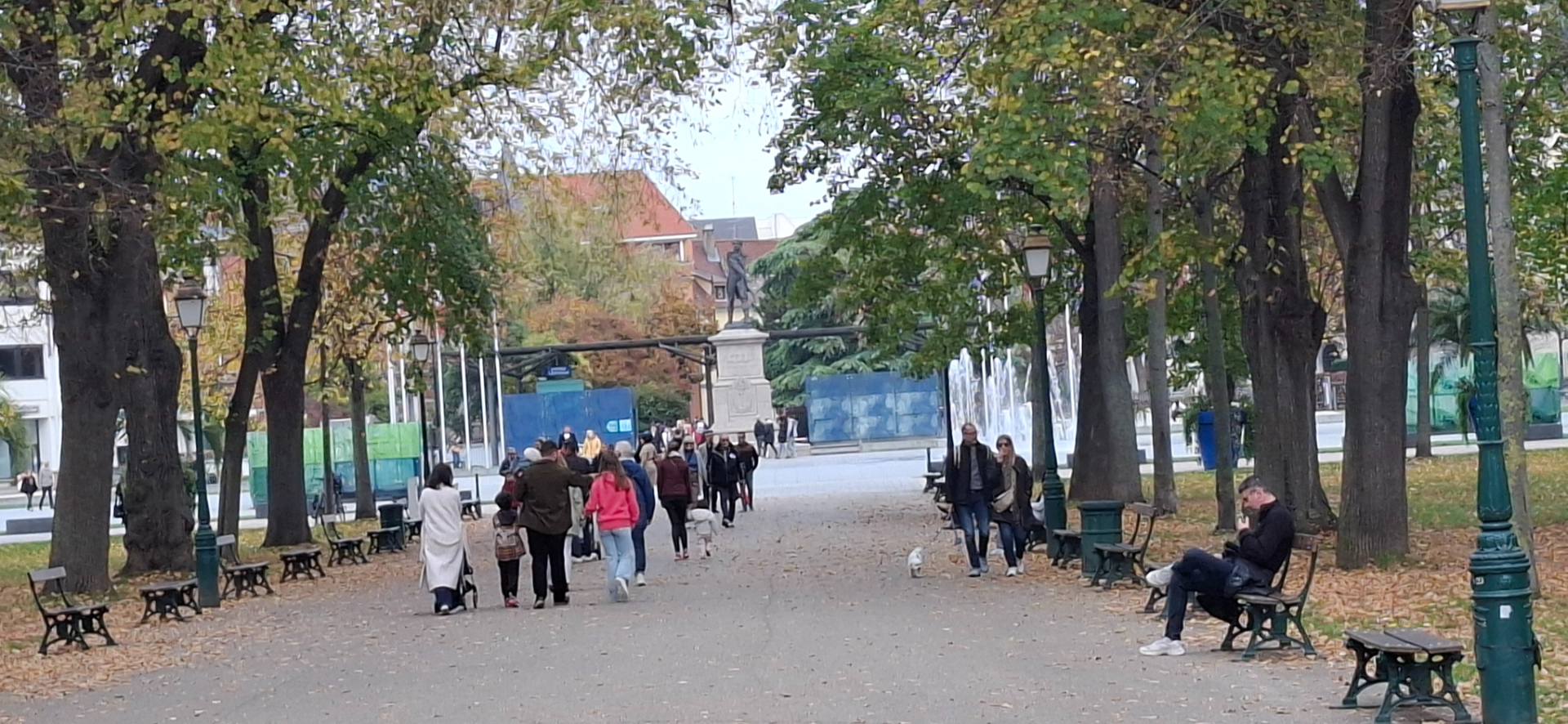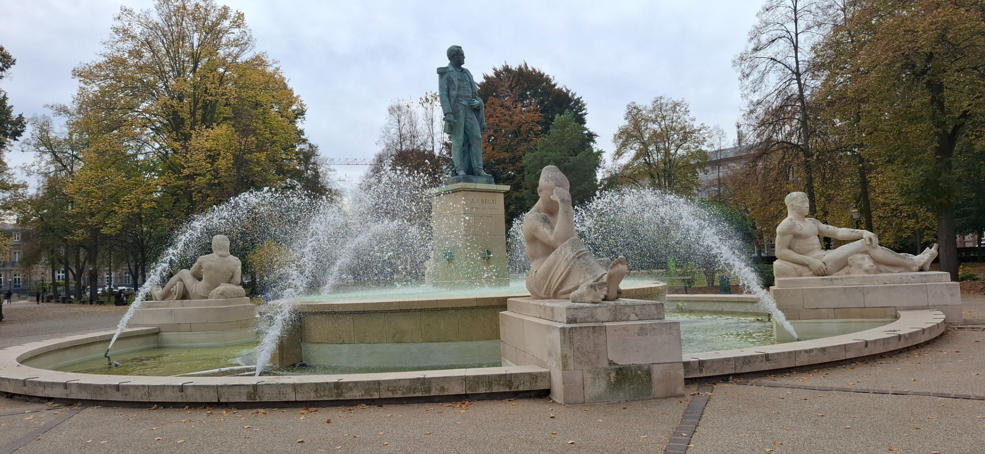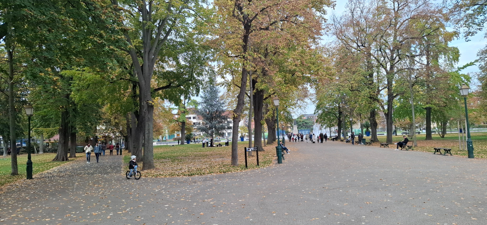 В большой парк попали на обратном пути к вокзалу. Парк Champ de Mars (Марсово поле), сначала появился, как прогулочная зона в 1745 году. И названа «Le Vanolles» в честь эльзасского интенданта Барте́леми де Ванолля. Он был важным королевским представителем в регионе при Людовике XV. Интенданты были ответственны за управление юстиции, полиции и финансов, а также за порядок, экономику и общественные дела в провинции. Такие названия были обычной практикой XVIII века как знак уважения к высокопоставленным чиновникам, чтобы полояльнее к горожанам относился.