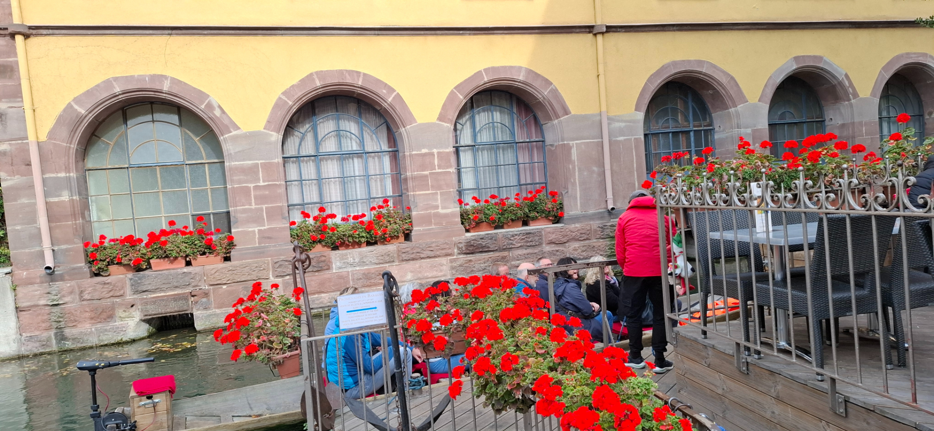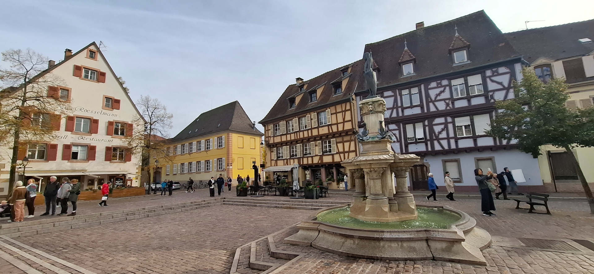 Дальше вглубь от канала в старый город по улице Рыбаков выходим на Рlace du Marché - историческую площадь, на которой традиционно проходили рынки, и которая до сих пор является важным торговым центром города. Кварталы вдоль воды и сейчас живописны. Тут утопающие в цветах фахверковые дома, живописные дворики, легкие мостики над каналами, островерхие черепичные крыши. Исторически это был район мареев/садоводов, каналами доставлявших в город свою продукцию. Название реки Lauch, которая протекает через «Маленькую Венецию», по легенде произошло от … лука-зелени. Один садовник-огородник был очень жадным: он загрузил свой плоскодонный бот-барку («barque») настолько большим количеством лука, что она дала крен и часть груза упала в реку. Так и возникло название.
