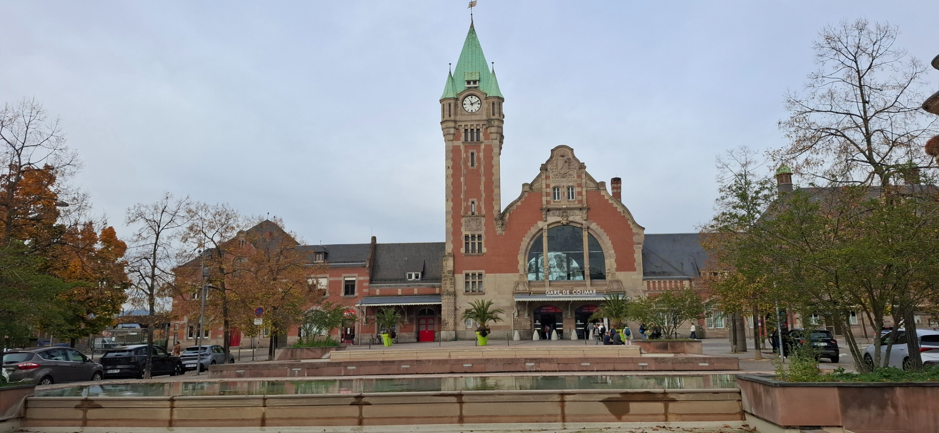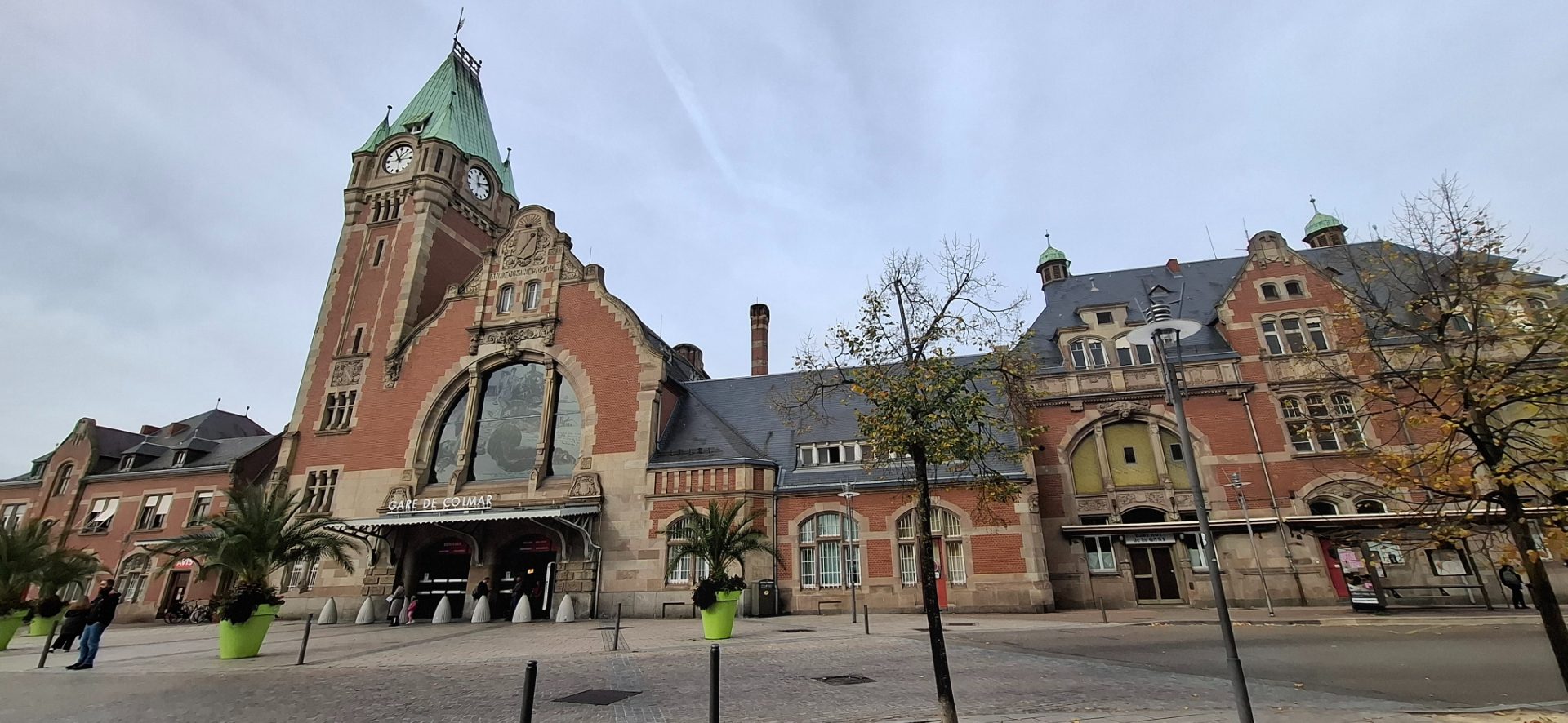 Первой достопримечательностью в городе предстает железнодорожный вокзал (Gare de Colmar), построенный в 1905 году в стиле немецкого необарокко. И получилось не рядовое офисное здание, как минимум какой-то дворец. Так как главный прообраз для него - итальянские палаццо эпохи Ренессанса.