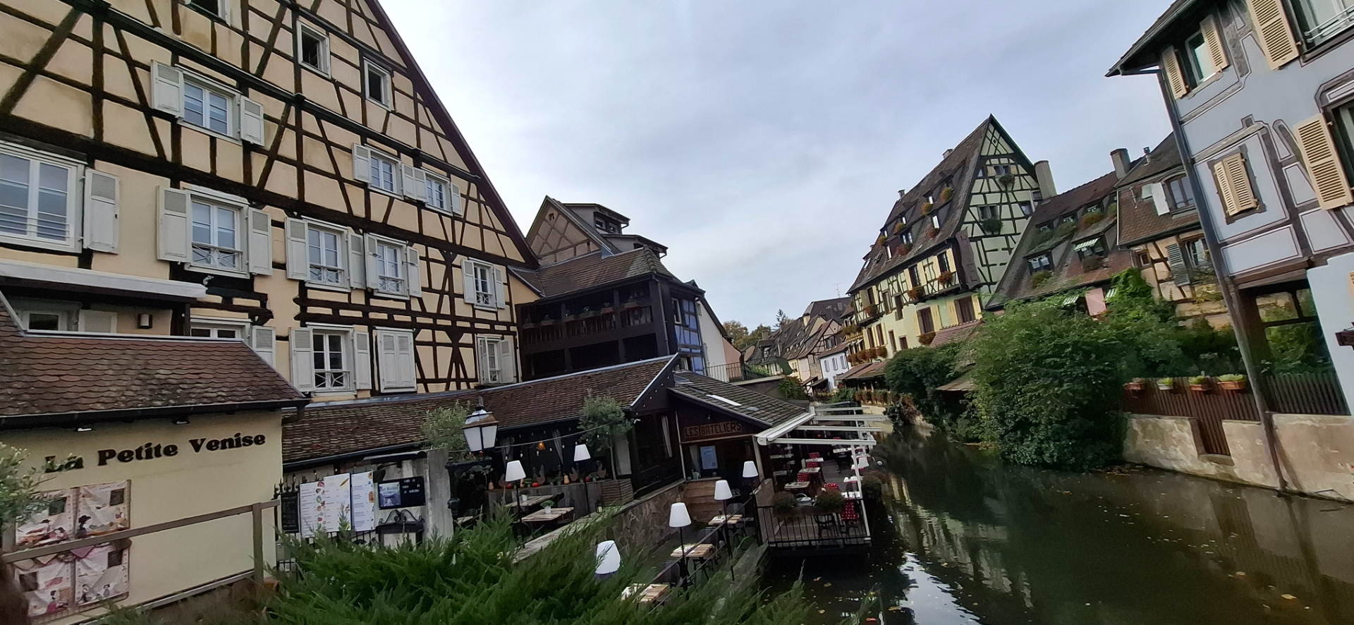 Фахверковые домики над каналом создают уголок из какого-то игрушечного мира. Немецкое строительный стиль, ведь, именно в Германии родилась такая конструкция домов, но фахверковые дома стали популярны во всей северной Европе. Вот и старый Кольмар их во всем многообразии представляет. Дороги или набережной вдоль реки нет, домики нависают над водой. Два самых красивых вида на Маленькую Венецию открываются с мостика близ Pl. De Six Montagnes Noires и с моста Pont St-Pierre.