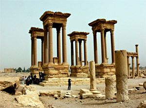 Деревня Тадмор больше известна всему миру под названием Пальмира. Она расположена на северо-востоке от Дамаска. В былые времена Пальмира была процветающим городом. Название его означало "город Пальм". Город считался "соперником Рима на Востоке", так как в древности это было одно из самых богатых римских поселений, крупнейший торговый центр, связывающий Восток и Запад, величественно вздымающийся среди песков бескрайней пустыни. Однако после завоевания арабами, Пальмира утратила свое торговое значение.