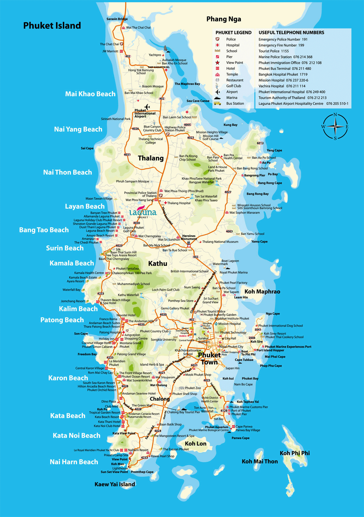 Туристическая карта Пхукета - карта, на которой представлены памятники архитектуры страны, места отдыха, музеи, театры, кафе и рестораны.
