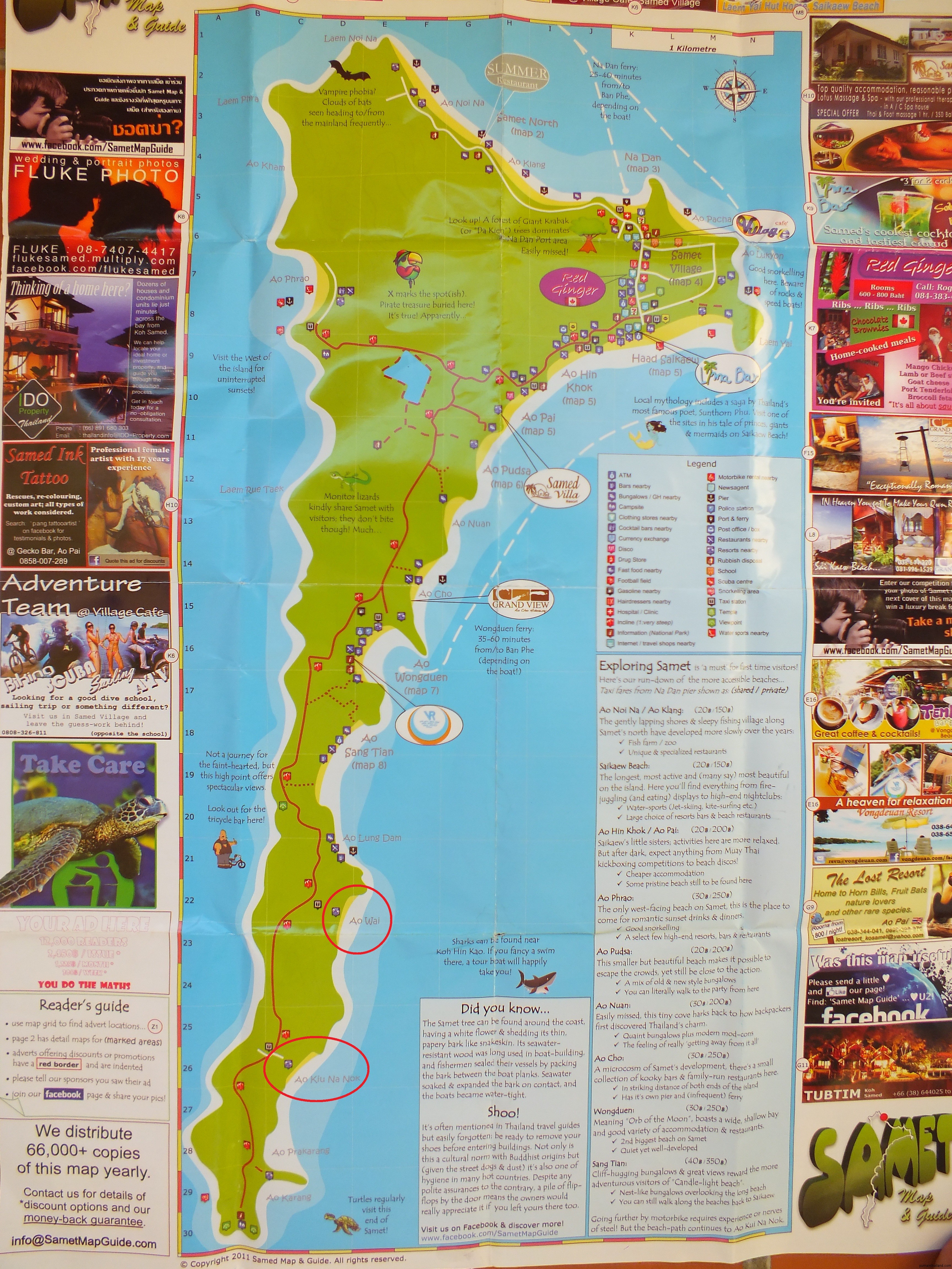 Туристическая карта Ко Самета - карта, на которой представлены памятники архитектуры страны, места отдыха, музеи, театры, кафе и рестораны.