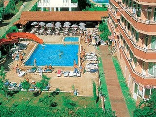 В общем, хороший отель по соотношению цена/качества. Отель находится в 11 км от города Алания. Отель довольно-таки высоко на скале, поэтому спуск/подъем - это еще и спорт! До моря недалеко, до ближайших магазинов - тоже. Два бассейна, водная горка (в...