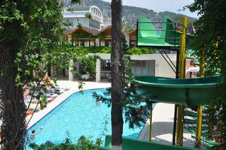 Отдыхали вдвоем с мужем в конце августа-начале сентября 2008г. Маленький, симпатичный отель, зеленая территория, море ближе некуда и горы, горы, горы... Номера тоже небольшие, но для сна и стирки купальника вполне достаточно:) Еда была однообразная, ...
