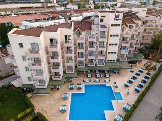 Отель на берегу для спокойного отдыха ,с большим пляжем,малой территорией,где за 11 дней,если вы не хотите,у Вас никто ничего не спросит...В каталогах идёт как 4*,но сами турки говорят о 3* и реально нормальная 3*До Кемера автобусом 10-15 мин,можно д...
