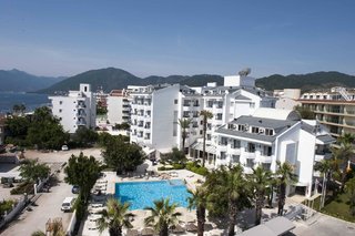 В самом Мармарисе нереально красиво. Что касается отеля, то надо начать с того, что персонал хамский, даже не стесняется просить деньги за любой шаг. С номером повезло, с видом на море, чистый и уютный. Питание, так себе. Можно сказать, что ели норма...