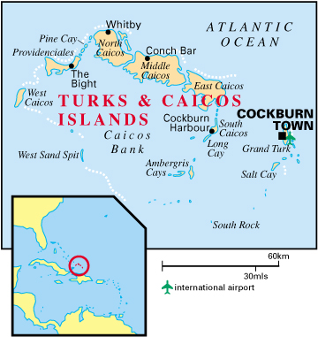 Карта Теркс и Кайкоса с городами и курортами