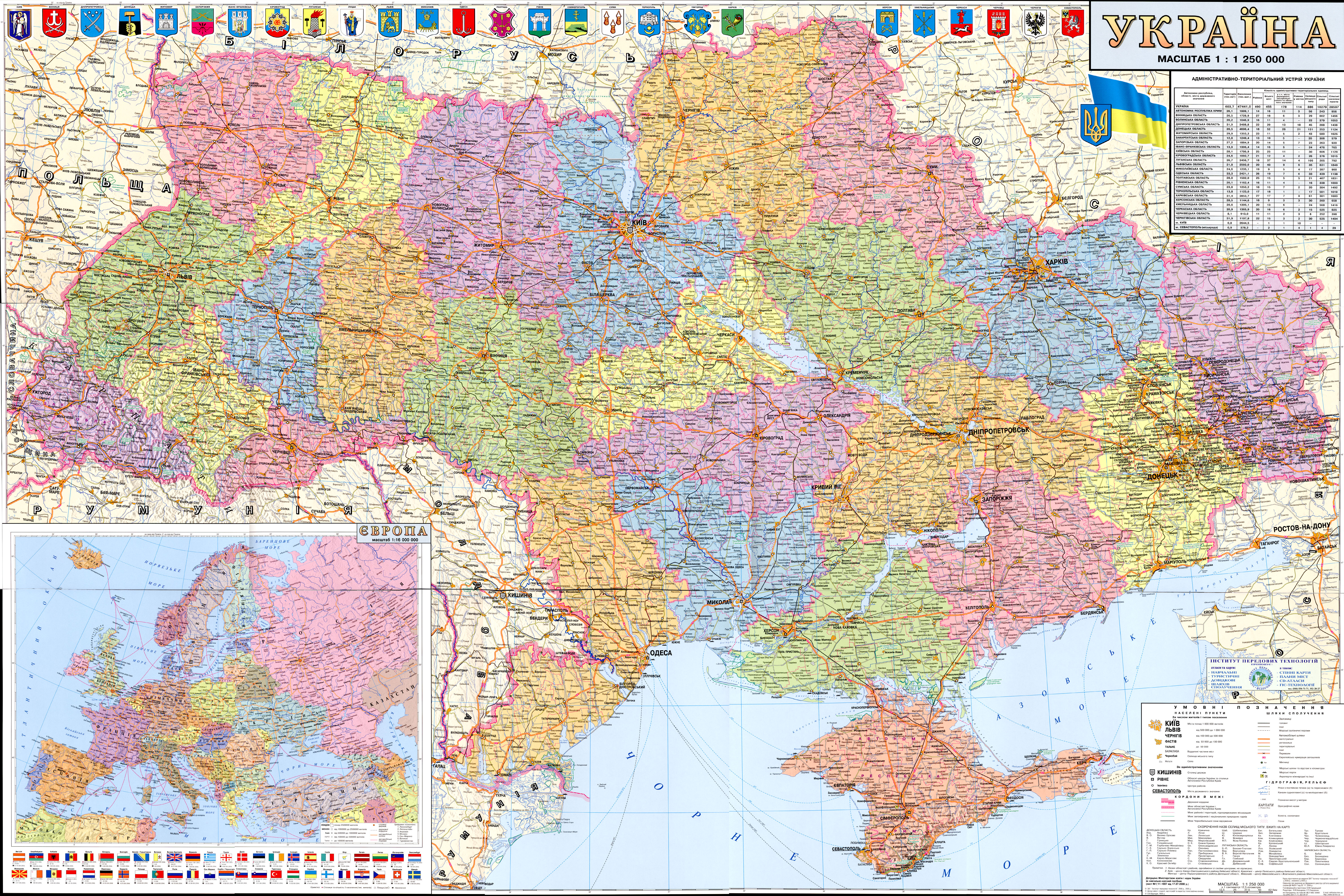 Подробная карта Украины - карта, на которой подробно изображена местность. Подробная карта содержит сведения о рельефе, городах, населенных пунктах, дорогах, коммуникациях и других объектах местности.