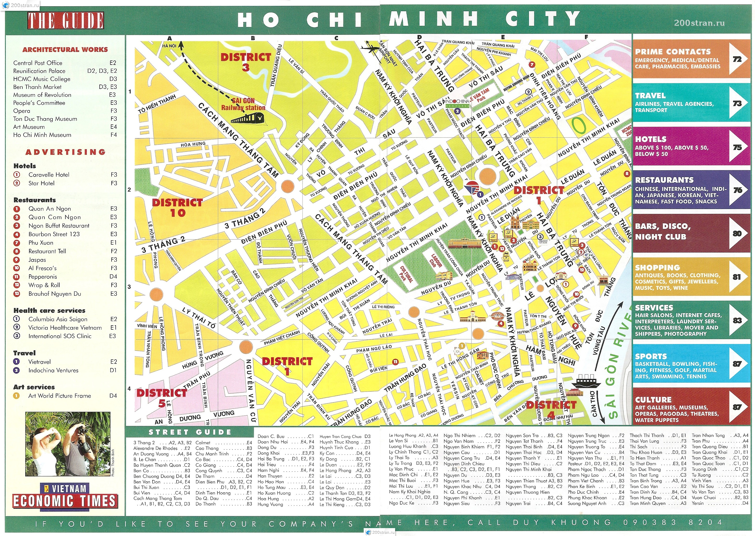 Туристическая карта Хошимина (Сайгона) - карта, на которой представлены памятники архитектуры страны, места отдыха, музеи, театры, кафе и рестораны.